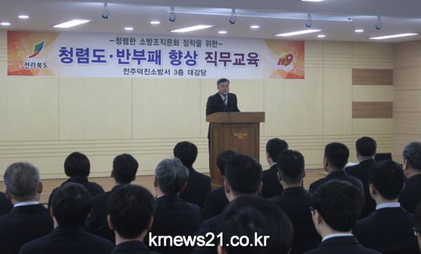 전주덕진소방서(서장 강원석)는 22일 전주덕진소방서 3층 대강당에서 소방공무원 120여명을 대상으로 2017년에도 더욱 신뢰받는 소방서비스를 향상시키기 위해 “직장 내 성폭력 예방교육”을 실시하였다.