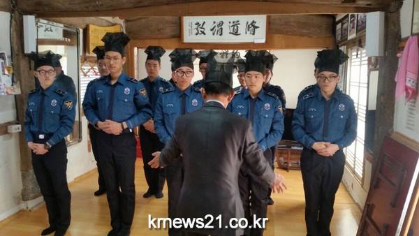 무안경찰(서장 정경채)은 존중과 배려하는 마음과 바른 인성을 가진 의무경찰 복무를 위해 소속 의경들을 대상으로 전통 지방 교육기관인 무안향교에서 우리의 전통문화 및 기본예절 교육을 실시하였다.