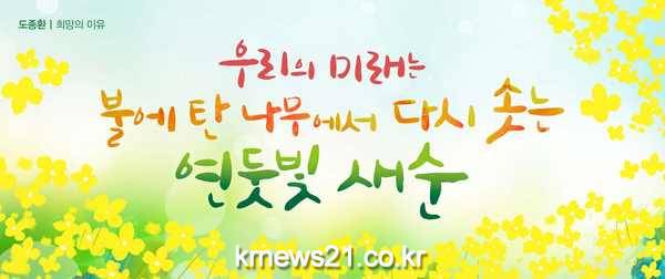 성씨는 “시골에서는 봄에 씨를 뿌리기 전 해충을 없애고, 겨우내 얼어 있던 대지를 깨우려고 논이나 밭을 태운다.”면서, “‘불에 탄 나무’는 시련과 고난의 기억이자 ‘연둣빛 새순’이 돋게 하는 거름이 될 수 있다”고 문안의 취지를 설명했다. 이어 “봄에 대한 기대와 희망을 담았다”고 덧붙였다.