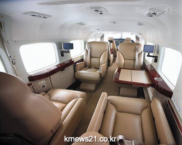이날 이 지사가 탑승한 항공기는 미국 세스나사에서 제작한 그랜드 카라반 208B이다. 항속거리 1천982㎞, 평균 시속 300㎞로 14인승이지만 ‘스카이 투어’를 위해 10인승으로 개조해 모든 좌석을 VIP시트로 구성했다.
