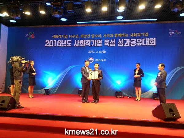 2016 전국 사회적기업 육성 우수기관 시상식은 6일 중소기업중앙회 그랜드홀에서 이기권 고용노동부 장관 등 100여 명의 관계자들이 참석한 가운데 성황리에 개최됐다.