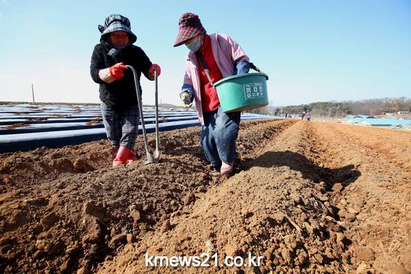 당진시 송악읍과 신평면, 고대면 들판에서는 요즘 들녘마다 농부들이 감자를 파종하며 새 봄을