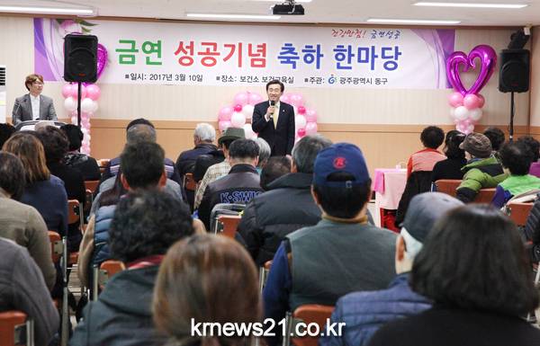 지난 10일 동구보건소에서는 지난해 금연에 성공한 금연 성공자들과 가족 등 100여 명이 참석한 가운데 ‘금연 성공기념 축하 한마당’행사가 열려 눈길을 끌었다.