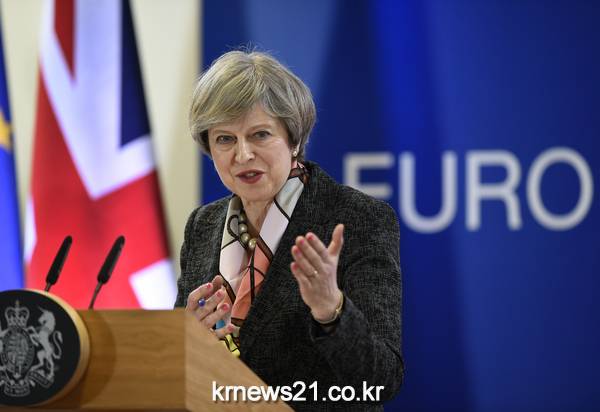 ▲ 지난 3월9일 브뤼셀 EU 본부에서 열린 유럽정상회담에서 기자회견을 하고 있는 테레사 메이 영국 총리. JOHN THYS / AFP[제공자ⓒ 뉴스21통신. 무단전재-재배포 금지.]테레사 메이 영국 총리가 브렉시트(영국의 유럽연합 탈퇴)절차를 공식적으로 들어갈 수 있게 되었지만 스코틀랜드를 포함한 지방 정부를 돌며 민심 달래기에 나설 전망이다.