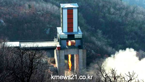 북한 조선중앙통신은 19일 “지난 시기의 발동기들보다 비추진력이 높은 대출력 발동기를 완전히 우리식으로 새롭게 연구제작하고 첫 시험에서 단번에 성공했다”고 주장했다.
