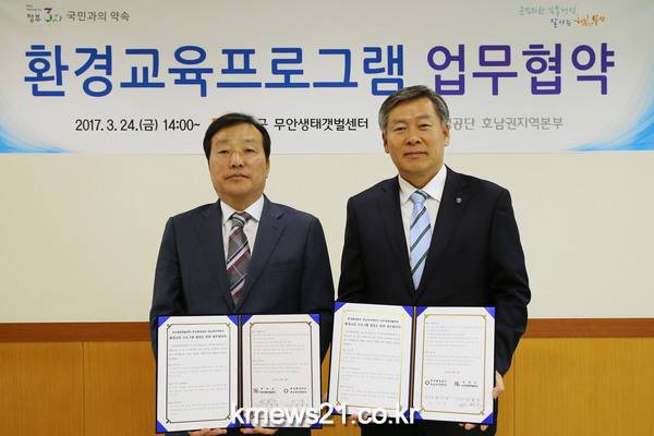 무안생태갯벌센터(군수 김철주)와 한국환경공단 호남권 지역본부(본부장 전기석)는 24일 지역민들을 대상으로 하는 환경교육 프로그램 운영에 관한 업무협약을 체결했다.