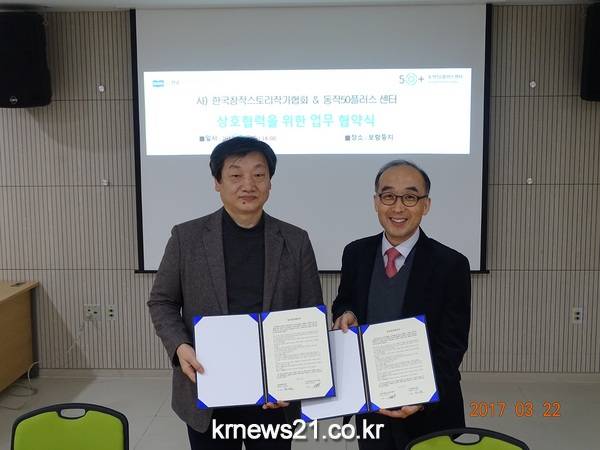 우리나라의 대표적인 웹소설 작가 단체인 (사)한국창작스토리작가협회(이하 한작협)와 동작50플러스센터가 2017년 3월 22일 노량진 동작50플러스센터에서 창작스토리 교육 및 발전을 위한 업무협약식을 맺었다.