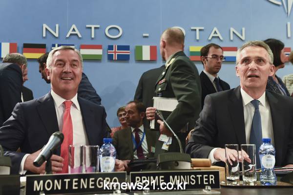 ▲ 지난해 5월19일(현지시간) 브뤼셀에서 열린 나토(NATO) 정상회의에 참석한 밀로 주카노비치 전 몬테네그로 총리(왼쪽)과 옌스 스톨텐버그 나토 사무총장. JOHN THYS / AFP[제공자ⓒ 뉴스21통신. 무단전재-재배포 금지.]미국 상원이 이번주 몬테네그로를 북대서양조약기구(NATO·나토)의 새 회원국으로 승인할 예정이다.