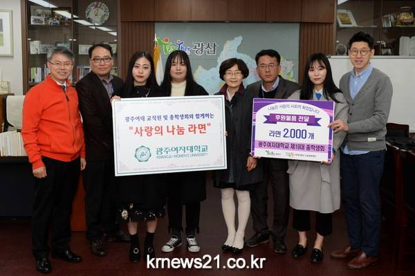 광주여자대학교 제19대 총학생회가 라면 2000개를 투게더광산 나눔문화재단에 28일 지정 기탁했다.