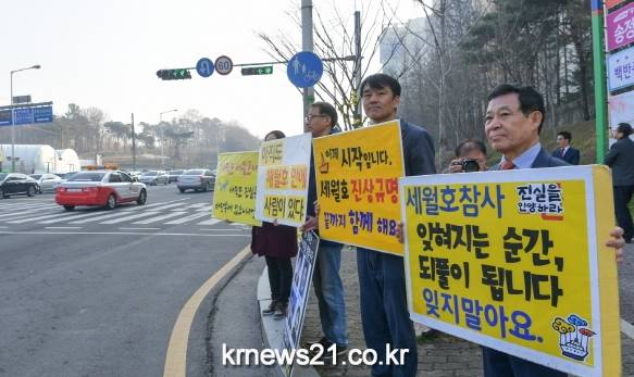 윤장현 광주광역시장은 3일 오전 서구 풍암동에서 세월호 진실 규명을 촉구하고 있는 ‘세월호 3년상을 치르는 광주시민상주모임’을 찾아 격려하고 거리 홍보를 함께 하고 있다.
