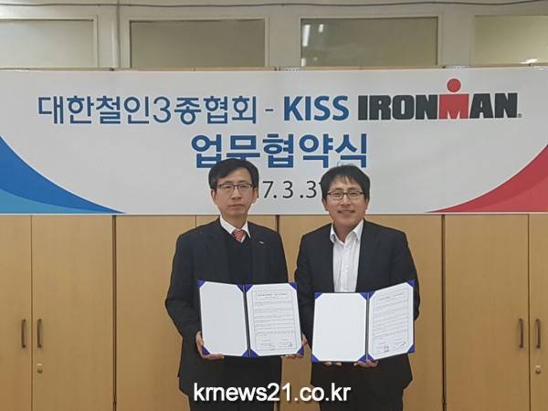 KISS-아이언맨코리아(㈜한국정보시스템앤드서비스, 대표이사 한진)가 (사)대한철인3종협회(회장 박석원)와 공동 업무협력 협약을 체결했다고 밝혔다.