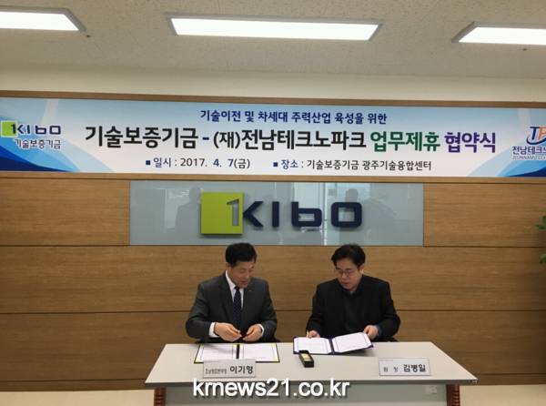 (재)전남테크노파크(원장 김병일)는 7일 기술보증기금 광주기술융합센터 회의실에서 기술보증기금(호남영업본부장 이기형)과 업무협력협약을 체결했다.