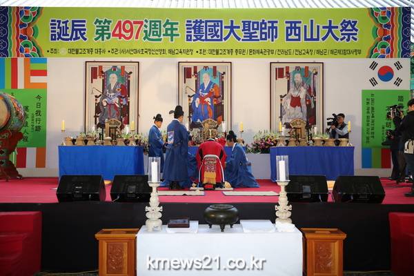 특히 서산대제는 예제관 행렬 재현을 시작으로 유교식으로 진행하는 서산대사 국가제향과 법어, 헌다, 헌화 등 불교식 제향으로 진행하는 법요식이 함께 열리는 특색있는 의식으로 관심을 모았다.