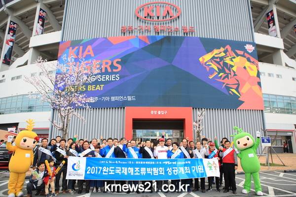완도해조류박람회조직위원회(위원장 신우철)와 재광완도군향우회(회장 윤풍식)는 지난 6일 기아와 SK 프로야구 경기가 열린 광주기아챔피언스필드경기장을 찾아 2017 완도국제해조류박람회 홍보 캠페인을 실시했다.