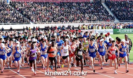 북한 제28차 만경대상국제마라톤경기대회가 지난 9일 평양에서 열렸다. 평양 김일성경기장을 출발한 대회는 42.195km, 하프마라톤, 10km달리기 등으로 나뉘어 진행됐다.
