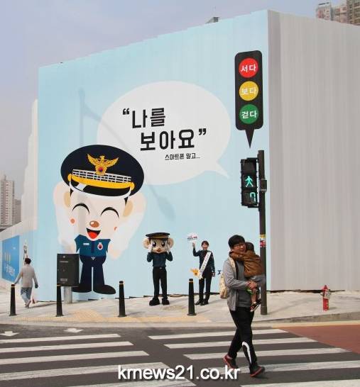 한편 벚꽃축제가 열린 금천구청 옆 부지에는 ‘금천경찰서 신축공사’가 진행 중인 가운데 경찰은 공사장 가림막으로 사용되는 펜스에 교통안전 주제로 경찰서 신축을 홍보함과 동시에 공사장 주변 횡단보도를 활용한 ‘교통안전 아트펜스’를 조성했다.