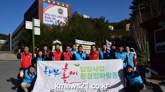 강원관광대학(총장 원재희)은 지난 12일 ‘행복홀씨 입양사업’에 교직원 사회봉사단 20명이 강원관광대학 정문에서부터 황지고등학교 정문까지 인도 주변 환경 정화활동을 했다고 밝혔다.