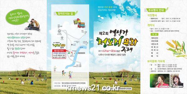노란 유채꽃과 푸르른 청보리가 어우러져 봄의 향취가 물씬 느껴지는 전남 나주시 다시면에서 제 2회 영산강청보리문화축제가 이달 21일(금)부터 22일(토)까지 양일간 펼쳐진다.