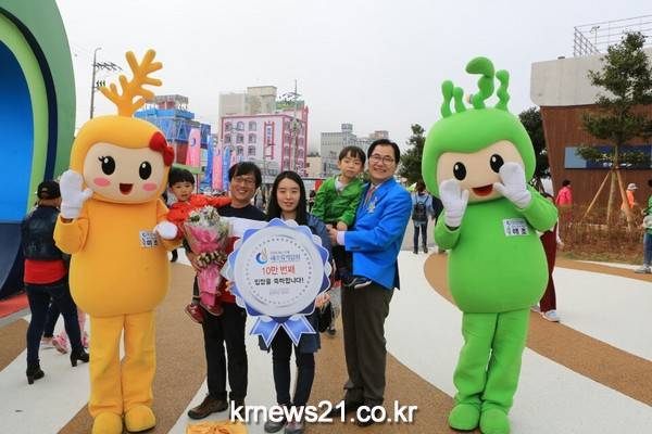 해조류박람회장 10만 번째 관람객은 대전에서 온 김주홍씨 가족이 입장했다.