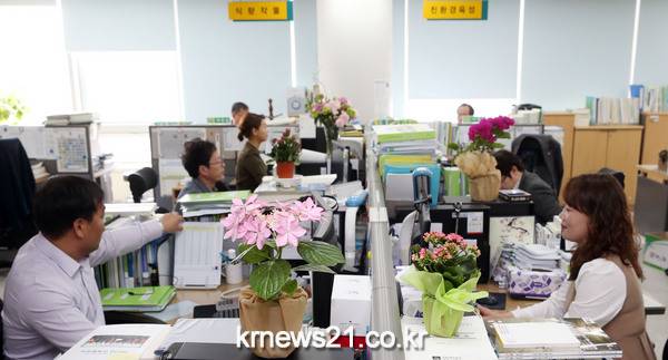 대상 꽃은 장미, 국화, 프리지어를 비롯해 칼라, 베고니아, 시클라멘 등 계절과 사무실 분위기에 어울리며 구입에 부담이 없는 초화류 위주다.