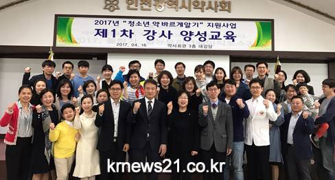 인천광역시약사회(회장 최병원)은 16일 시약사회관 3층 대강당에서 2017년 '청소년 대상 약 바르게 알기' 지원사업 제1차 강사 양성교육을 실시했다.