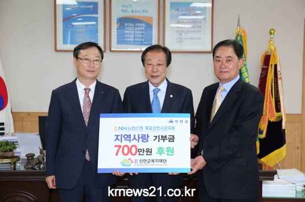 (재)신안군복지재단(이사장 윤창섭)은 지난 14일 신안군청에서 NH농협은행 목포신안시군지부(지부장 장은석)로 부터 지역사랑 기부금 700만원을 전달 받았다.