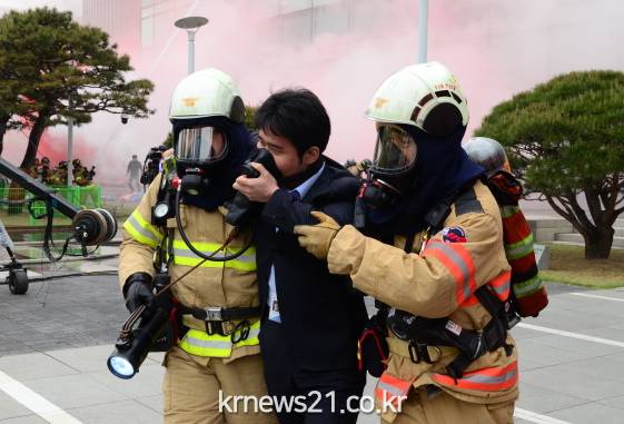 특히 이날은 외국(대만, 몽골, 싱가폴, 미얀마, 말레이시아, 벨라루스, 페루) 소방관들이 참여해 인명구조 활동을 실시했다.