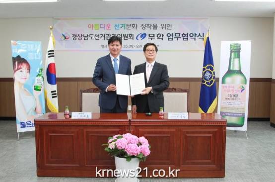 이날 협약식에는 최재호 무학그룹 회장, 강민철 무학 사장과 이용섭 경남도선관위 사무처장 외 관계자 10여명이 참석했다.