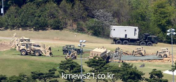 한미 양국은 26일 새벽 성주골프장에 차량식 이동형 발사대, 레이더, 교전통제소, 냉각기 등 사드 운용 장비를 반입했다.