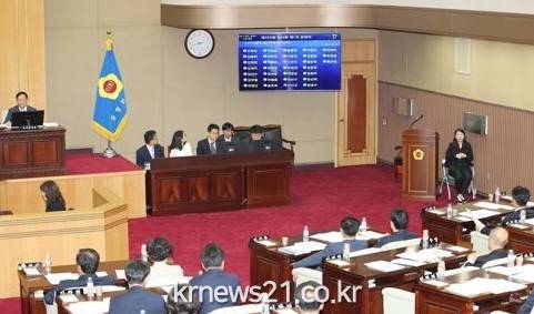 양측이 팽팽히 맞서자 회의를 진행한 엄재창 부의장(한국당)이 정회를 선언하고, 대화에 나섰으나 합의점을 찾지 못했다.