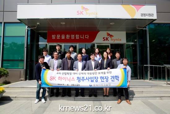 충북지방조달청(청장 이기헌·앞줄 왼족 4번째)은 28일 SK 하이닉스 청주사업장을 방문했다. 이번 방문은 4차 산업혁명 대비 선제적 대응방안을 모색하고 직원 역량강화를 위해 마련됐다.