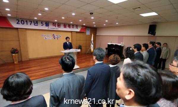 인천시 동구는 1일 구청 대회의실에서 전 직원이 참석한 가운데 5월 월례조회를 개최했다.