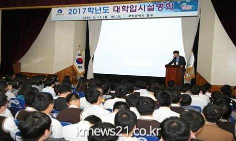 부산중구(구청장 김은숙)는 오는 17일 오후 7시 수험생과 고등학생, 학부모, 교사 등을 대상으로 대청동 가톨릭센터 소극장에서 '2018학년도 대학입시설명회'를 개최한다.