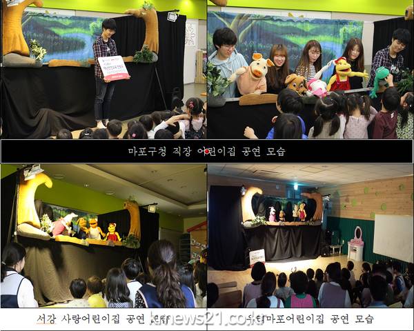 또, 5월 15일(월) 오전에는 창전동에 위치한 ‘서강어린이집’에서 원아 약 30여 명이 자리를 채운 가운데 같은 공연이 실시되었으며, 5월 17일(수) 오전 마포구청 내에 소재한 ‘마포구청 직장어린이집’에서 공연이 진행했다.