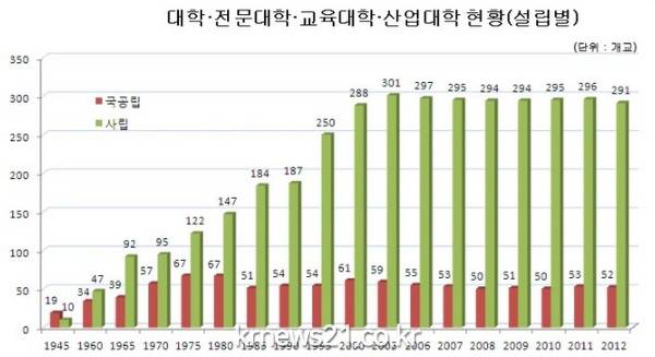 ▲ △ 년도별 국공립,사립형 대학교 설립현황문재인 대통령의 교육공약을 총괄한 김상곤 전 경기도교육감이 최근 국공립대 비율 확대를 언급한 가운데 이를 달성하기 위한 구체적인 방안에 대한 관심이 커지고 있다.