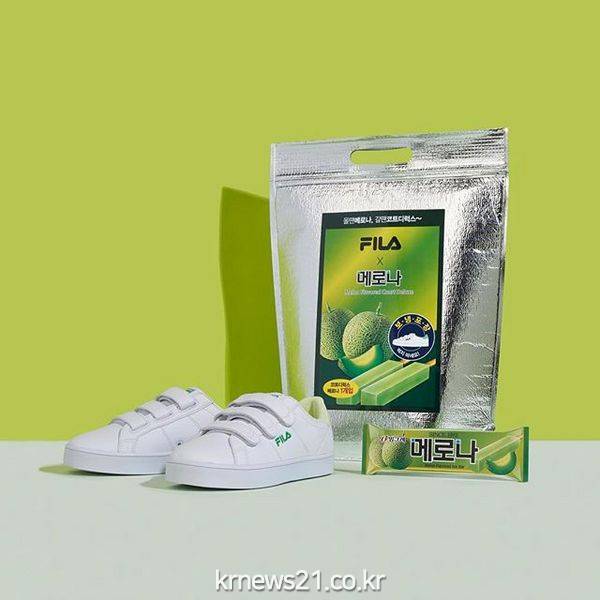 ▲ 사진제공/fila_korea휠라가 아이스크림 '메로나'와 손잡고 협업 컬렉션 제품을 내놓았다.
