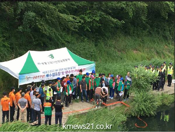 부평구(구청장 홍미영)는 25일 갈산동에 위치한 갈산배수펌프장에서 ‘배수펌프장 및 양수기 가동 훈련’을 가졌다.