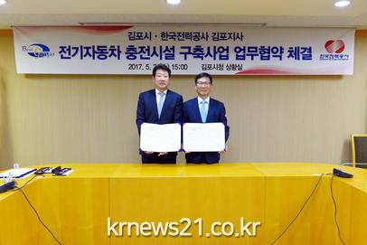 김포시와 한국전력공사 김포지사(이하 한전)가 전기자동차 충전시설 확충을 위해 손을 잡았다.