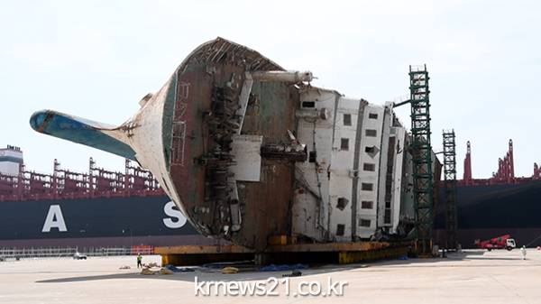전날 오후 세월호가 거치된 목포신항에 초속 5∼6m의 강한 바람이 불면서 오후 1시 작업을 일시 중단했다. 기상 여건이 좋아지면서 이날 오전부터 작업을 재개했다.