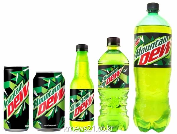 리뉴얼 마운틴듀는 라벨 디자인에 강렬한 블랙 컬러를 주 배경색으로 사용하고 거친 느낌을 주는 서체를 적용해 마운틴듀 브랜드 가치인 역동성과 짜릿함, 카리스마를 표현했다. 소매점·식당 등에서 판매되는 250㎖, 355㎖ 캔과 400㎖, 600㎖, 1.5ℓ 페트병 총 5개 제품에 적용됐다.