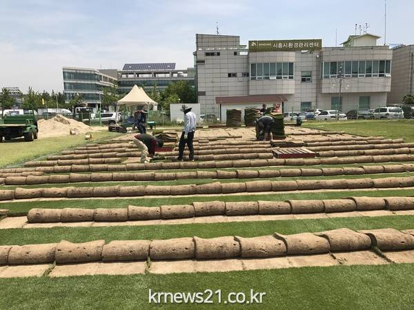 시흥시(시장 김윤식)는 서울월드컵경기장 내 다목적구장 조성을 위한 시흥 잔디 500㎡를 6월 21일 (화) 공급하여 9,650천원의 세외수입을 확보했다고 밝혔다.