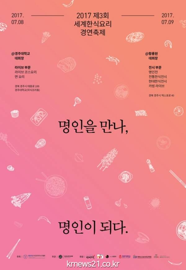 외식조리마이스터협회는 7월 8∼9일 경북 경주시 보문단지 랜드마크 건물인 황룡원과 경주대에서 '제3회 세계한식요리경연축제'를 개최한다고 29일 밝혔다. 이 경연축제는 8년 만에 다시 열리는 것이다.
