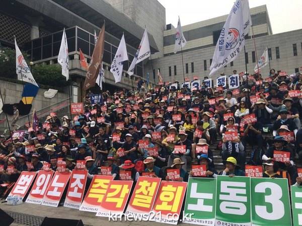 비정규직 철폐와 최저임금 만 원을 촉구하는 대규이라고 설명했다. 공공운수노조 금속노조 건설노조 한국비정규교수노조 등 민주노총 소속 산별단체 16개와 함께 알바노조 서울장애인차별철폐연대 백남기투쟁본부 사드한국배치저지전국행동 등 시민사회단체도 참여했다.