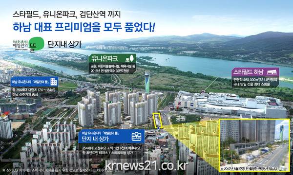 경기도 하남 신장동에 분양하는 하남 유니온시티 에일린의 뜰 단지 내 상가는 지상 1~2층 점포 30개로 구성했다. 점포 면적이 다양해 소규모 잡화점부터 대형 외식 프랜차이즈, 은행, 병원까지 다양한 업종이 입주할 수 있다. 주변에 신평초ㆍ신평중ㆍ신장고 등 학군이 조성돼 학원 영업도 가능하다.