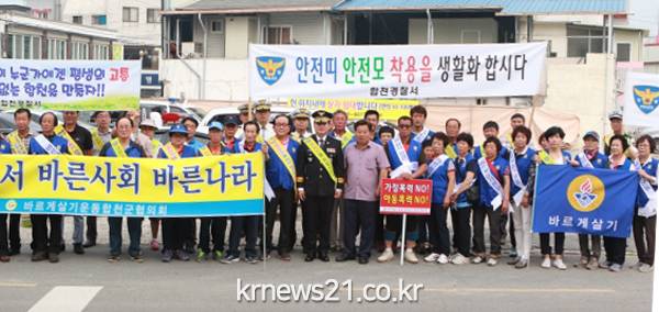 합천경찰서(서장 심한철)는 3일 합천읍 군청사거리의 2개지점에서 ‘지켜가요! 함께해요! 교통안전선’이라는 주제로 합천경찰서 주최 아래 합천군청, 모범운전자회, 바르게살기운동합천군협의회 등 총 100여명이 참여한 민·관·경 합동캠페인을 전개하였다.