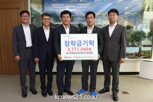 밝은 미래 교육하남을 실현하기 위해 하남시와 NH농협은행 하남시지부(지부장 김갑철)는 지난 5일 시장 집무실에서 (재)하남시민 장학회에 장학사업 기탁금으로 377만7천원을 전달했다.