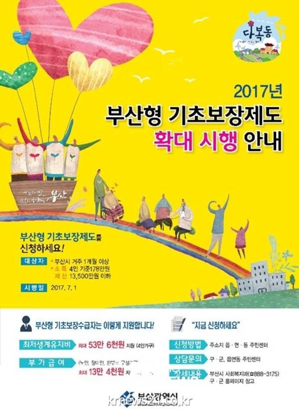 부산시는 ‘부산형 기초보장제도’ 활성화를 위해 대상자 선정기준을 대폭 완화해 확대 시행한다고 17일 밝혔다.