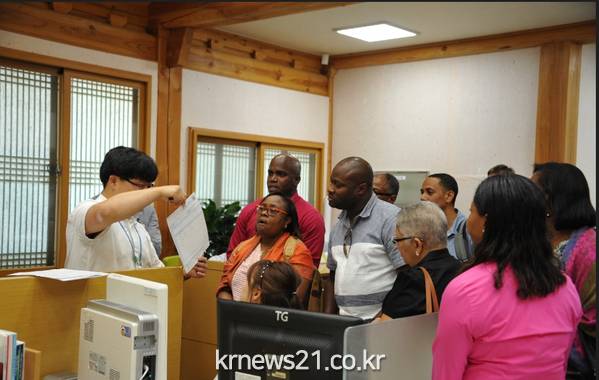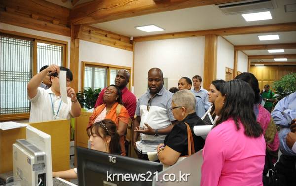 지난 19일 오전 자메이카 총리실 등 공무원 방문단이 김포시 운양동주민센터를 찾아 대한민국의 주민등록시스템과 운영체계를 견학했다.
