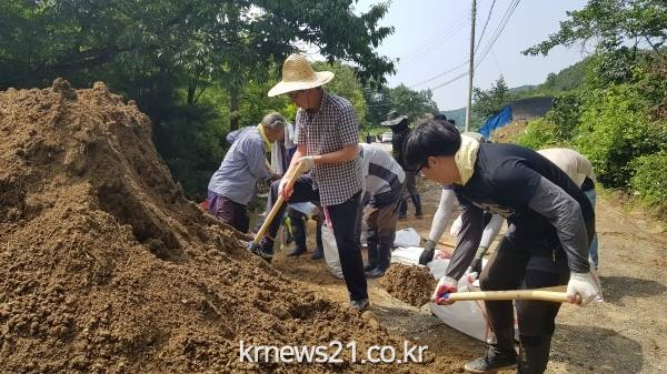 이날 이순선 군수를 비롯한 공무원 40명과 자원봉사자 30명 등 70명은 집중호우로 피해가 컸던 목천읍 서흥리 일대를 방문해 하천제방에 마대를 쌓고 토사를 정비하면서 구슬땀을 흘렸다.