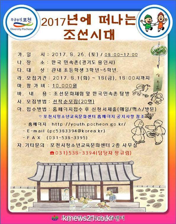 이번 8월 26일에는 ‘2017년에 떠나는 조선시대’라는 타이틀로 청소년들이 조선시대의 풍습, 문화를 경험해 조선의 지혜와 슬기를 엿보고, 다양한 관점의 지식을 배울 수 있도록 각종 체험활동을 할 계획이다.